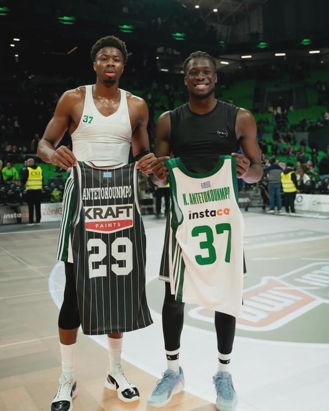 北京时间10月14日,NBA名记Shams报道,雄鹿和字母哥的五弟(亚历克斯-阿德托昆博)签下双向合同,这是NBA历史上首次出现三兄弟同队。雄鹿已经有了3份双向合同,为了签下亚历克斯,雄鹿裁掉了双向合同的贾马里-布耶。雄鹿原本想签字母哥的四弟科斯塔斯,他的实力要强于亚历克斯。但是科斯塔斯在NBA已经效力三年以上,无法再签双向合同,雄鹿只能签下亚历克斯。更搞笑的是,Shams在节目中表示,此前字母哥对雄鹿签约亚历克斯并不知情。不管大家信不信,反正教主是不信。为了留住字母哥,雄鹿拼了。今年夏天,雄鹿给了字母哥的二哥萨纳西斯一份底薪合同,1年290万美元、全额保障。上赛季在快船场均9.7分的阿米尔-科菲,如今在雄鹿只拿到一份训练营合同。字母哥兄弟五人,大哥弗朗西斯-阿德托昆博从小跟着祖父母在尼日利亚生活,后来才去希腊跟父母和兄弟团聚,跟字母哥他们几个感情没那么好。弗朗西斯-阿德托昆博出生于1988年10月20日,身高1米96,曾是一名职业足球运动员。萨纳西斯出生于1992年7月17日,身高2米01,2014年NBA选秀大会的51号秀。2023-24赛季,萨纳西斯在雄鹿场均0.9分0.4篮板0.5助攻。2024年5月,他遭遇跟腱撕裂,2024-25赛季一场没打。即便这样,今夏雄鹿还是将其签回。老三扬尼斯-阿德托昆博(字母哥)出生于1994年12月6日,身高2米11,臂展2米24。字母哥从小跟着父母移民到希腊,童年时期要靠摆摊维持生计。2013年NBA选秀大会,字母哥首轮第15顺位被雄鹿选中,生涯至今总薪水2.84亿美元。四弟科斯塔斯-阿德托昆博出生于1997年11月20日,身高2米08,臂展2米18,2018年的60号秀。科斯塔斯曾在独行侠、湖人和公牛等队效力,NBA生涯场均1分1篮板0.1助攻。2020年跟随湖人夺冠,目前在希腊豪门帕纳辛纳科斯。五弟亚历克斯-阿德托昆博出生于2001年8月26日,身高2米01,臂展2米18,2021年NBA落选秀。2021-22赛季,亚历克斯在发展联盟场均2.6分1.3篮板。2022-23赛季,在发展联盟场均5.8分3.1篮板。他从未打过NBA,2024年转战欧洲联赛。无论是萨纳西斯还是亚历克斯,根本不具备在NBA立足的能力,雄鹿签他们自然是为了安抚字母哥。今天亚历克斯签约之后,字母哥在一档节目中说道:“我很忠诚,雄鹿给了我一切,改变了我和家人的生活,我想和雄鹿再次夺冠!”最后一问:你觉得谁是NBA最强关系户?