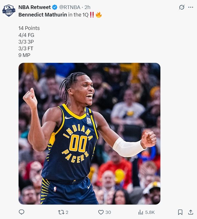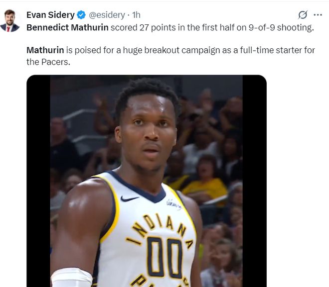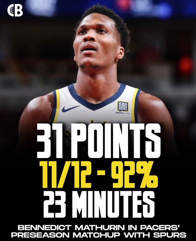 步行者官方也晒出马瑟林这场比赛的数据为他点赞,要知道他此前的两场季前赛,一场一场14分钟拿8分,一场16分钟拿16分,但他全部都已经先发,上赛季他只有49场比赛(合计72场常规赛)先发,新赛季他将锁定先发席位,因为内姆布哈德将打一号位。