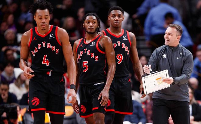 换来巴雷特和奎克利,后场得到提升。然后就是在23-24赛季的中期,猛龙队进行了一笔重要的交易,用OG·阿努诺比和阿丘瓦,从尼克斯队交易来了RJ·巴雷特。巴雷特是一个土生土长的加拿大籍球员,回到多伦多可谓是大势所趋。作为2019年的探花秀,虽然从未入选过全明星阵容,但绝对是一个合格的二、三当家,尤其是在来到了猛龙队之后,他在剩余赛季稳定贡献21.8分、6.4个篮板和4.1次助攻,投篮和三分命中率分别达到了55.3%和39.2%,成为了球队的后场得分核心。本赛季,虽然因为布兰登·英格拉姆的到来,他牺牲了一定的出手权,但仍旧有19.3分、4.8个篮板和3.9次助攻的输出,命中率更是维持在了50%,这是非常可观的数据和效率,巴雷特的加盟,无疑给到了球队重建巨大的信心。