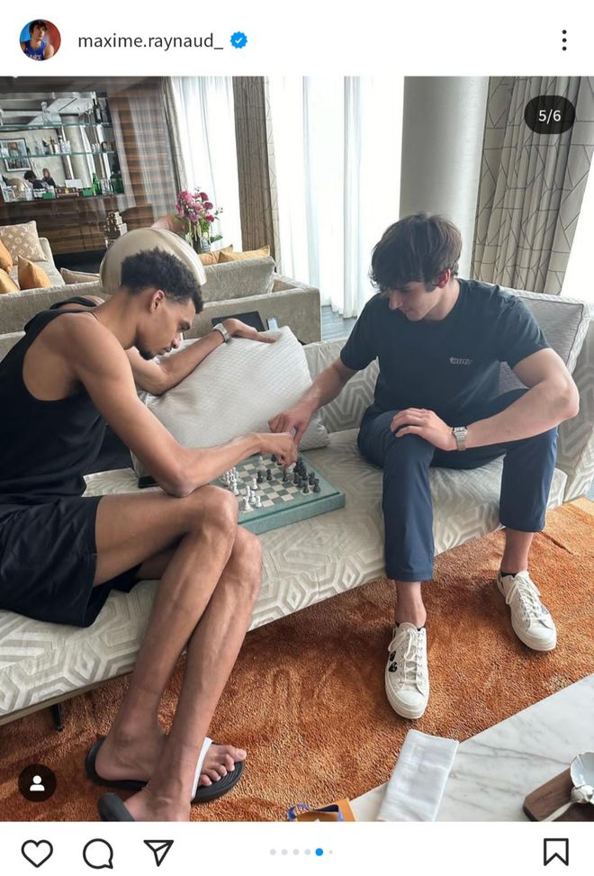 雷诺本人的形容是:“只要我认真,文班是不可能有赢的机会的。”雷诺爷爷曾经夺得过法国的国际象棋冠军,从小就上着大师课,当然比业余玩家要专业不少,但雷诺爷爷的冠军身份在这个家族中并不算突出,他母亲来自法国高级军官家庭,父母双方都是名校高材生,都是生物技术工程师。这也不难解释,为什么这个球员身上集齐了冷静、洞悉力、不怯场、自律这些宝贵的优点,而这个家庭优越、文体双栖的超级人类,甚至还长得如此帅气潇洒,简直是人类当中的顶级建模。