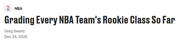 北京时间12月25日,2025-26赛季NBA最精彩的看点之一,当属天赋异禀的新秀阵容。弗拉格正不断刷新詹姆斯20多年前创下的纪录。一众新秀扛起了状态突然火热的鹈鹕队,而黄蜂队则可能迎来一位超越拉梅洛-鲍尔的新球队核心。知名美媒Bleacher Report认为,是时候对联盟所有球队的新秀阵容开赛两个月以来的表现进行评级了。他们为30支球队的新秀进行评级(注:以球队为单位,所有数据和纪录均截至12月23日。火箭队是联盟中唯一一支阵容中没有新秀的球队。)中国球迷最关注的肯定是开拓者的新秀评级,毕竟杨瀚森在这支球队效力。Bleacher Report为开拓者的新秀评级为D,算是比较糟糕的评分,具体点评如下——波特兰开拓者队在2025年选秀大会上以16号签选中杨瀚森,堪称本届选秀最大的冒险之一。现在断言开拓者此举是慧眼识珠还是昏招,可能为时过早,不过就目前来看,后者的可能性似乎更大。杨瀚森始终未能跻身开拓者的轮换阵容,在对阵灰熊队的职业生涯首次首发中表现糟糕。他仅上场19分钟就领到5次犯规,出现2次失误,仅贡献4分、5个篮板和2次助攻。24岁的凯莱布-乐福表现拉胯,整体投篮命中率仅33.0%,三分命中率更是低至25.2%,他在场的时段,球队比他不在场百回合多输12.8分。新秀评级最高的球队是76人、鹈鹕和独行侠,他们都获得了A的评级。