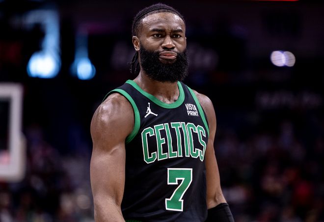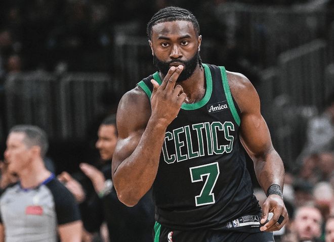 赛季至今,布朗出战32场,场均出战33.8分钟,场均轰下30.1分(联盟第4)+6.3篮板+5助攻+1.1抢断+2.1记三分球,三项命中率分别为51%,37%和77.9%,真实命中率为60.2%。其中,打活塞,布朗狂轰41分6板4助;打森林狼,布朗爆砍41分6板7助;打尼克斯,布朗攻下42分4板4助;打快船,布朗豪取50分3板5助。布朗在进攻端又稳又狠,场均投篮命中率高达11.1次,排在联盟第1位,堪比新一代跳投大师。同时,布朗在防守端也格外抢眼,限制对手投篮命中率为39.37%,排在联盟第2位,仅次于华莱士(38.06%),作为对比,文班亚马限制对手命中率仅为39.4%。
